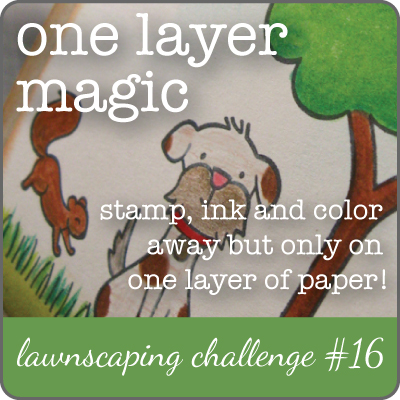 These Lawn Fawn stamps are just too cute, I just love those wonderful puns! I am also a sucker for a one layer challenge and couldn’t miss out on this weeks Lawnscaping Challenge, so out came the masking paper and Copics! I’d better go now and see what everyone else has been making, so little time, so many blogs to visit!