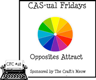 Keep it fun, simple & bright….  and you have a masculine card!  I made this one for the Paper Smooches SPARKS Challenge, such fantastic inspiration yet again thank you Kim!  I’ve combined it with this week’s CAS-ual Friday’s  Opposite’s Attract, it’s another Yummy  fab colour challenge!  Off to Zumba now and happily on days off…  hoping to find some crafty time and not too much house work!