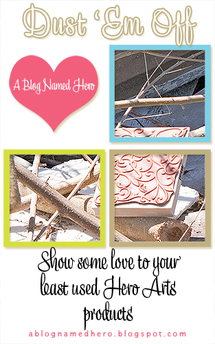 I couldn’t resist the chance to combine the current challenge at the Hero Arts Blog (they are celebrating Birthdays this month) with A Blog Named Hero who is encouraging us to ‘Dust ’em Off’. I totally adore this stamp and have hardly used it, I am wondering if it’s because it’s a woodblock and I store them separately and just miss the visual prompt when I’m chosing stamps to make a card. Then I started looking for a ‘happy birthday‘ sentiment & couldn’t believe that I didn’t have a Hero Arts one, until…. my prize arrived from the Hero Arts Blog (thank you, thank you, thank you) and I just had to use this stamp from Year Round Sentiments, what a fantastic set!