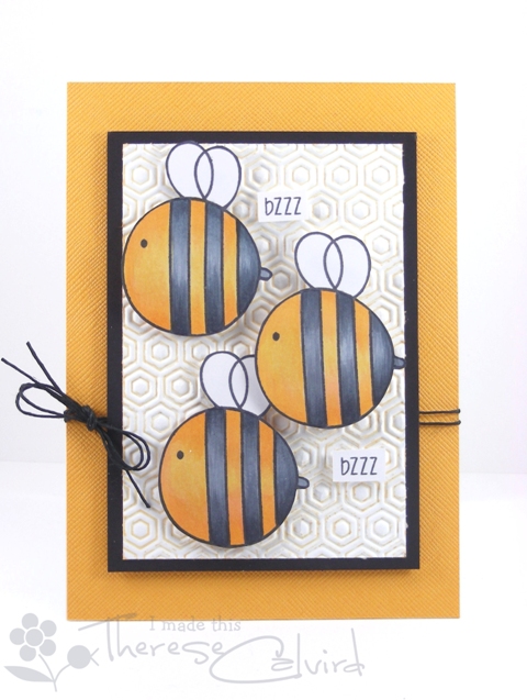 This is adorable, Therese! The texture in the background is so fabulous! The way you shaded the black in the bees is ridiculously good. 🙂