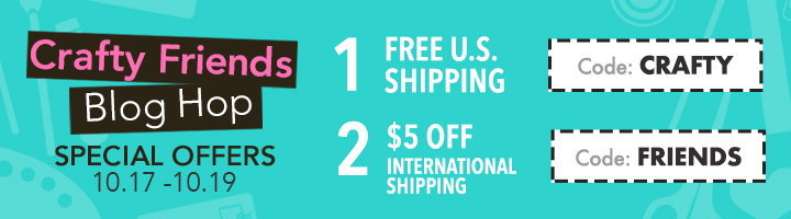 FREE U.S. shipping with code CRAFTY or $5 OFF international shipping with code FRIENDS at checkout. Offer valid from October 17th at 12:01 am EDT through October 19th at 11:59 pm EDT. Not valid on prior purchases. Cannot be combined with other promo codes.