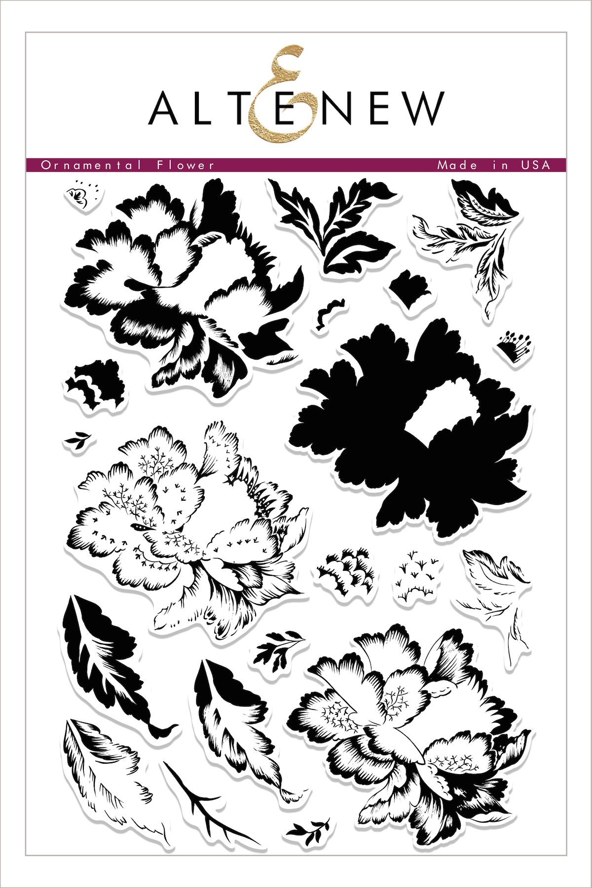Time for a new focus post at Altenew and I am showcasing the new Ornamental Flower Stamp set and coordinating dies. My best advice to you with a multi layering stamp set like this is you may as well stamp out a few, and by using a stamp positioning tool this is easy to do.