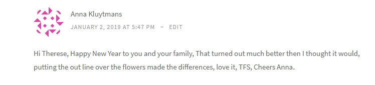 Hi Therese, Thank you, I am thrilled to be a winner, I love your work, Thanks again, Cheers Anna.
