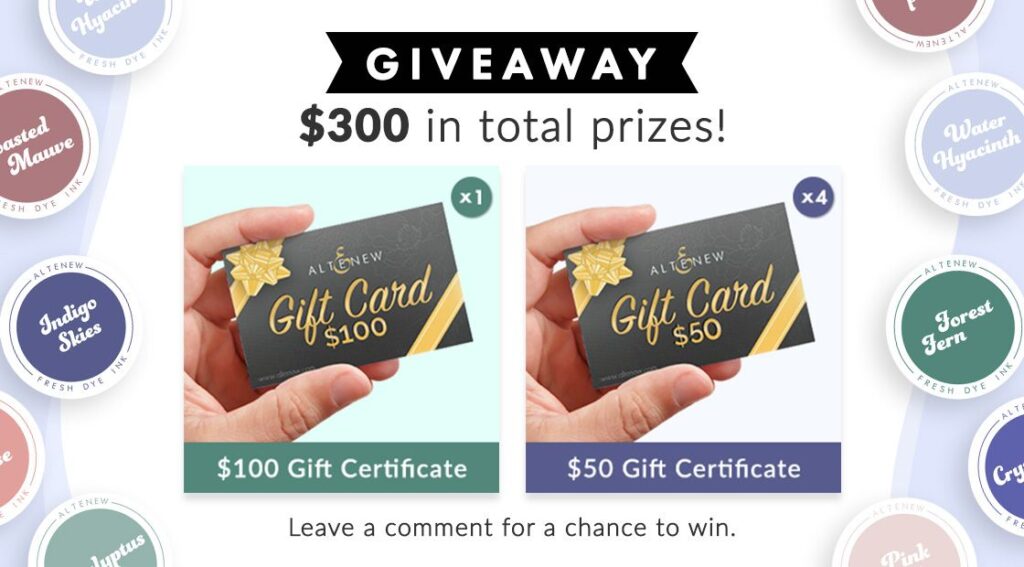 $300 in total prizes! To celebrate this release, Altenew is giving away a $50 gift certificate to 2 lucky winners and a $25 gift certificate to 8 winners! Please leave a comment on the Altenew Card Blog and/or each designer’s blog post on the blog hop list below by 11/19/2022 for a chance to win.
