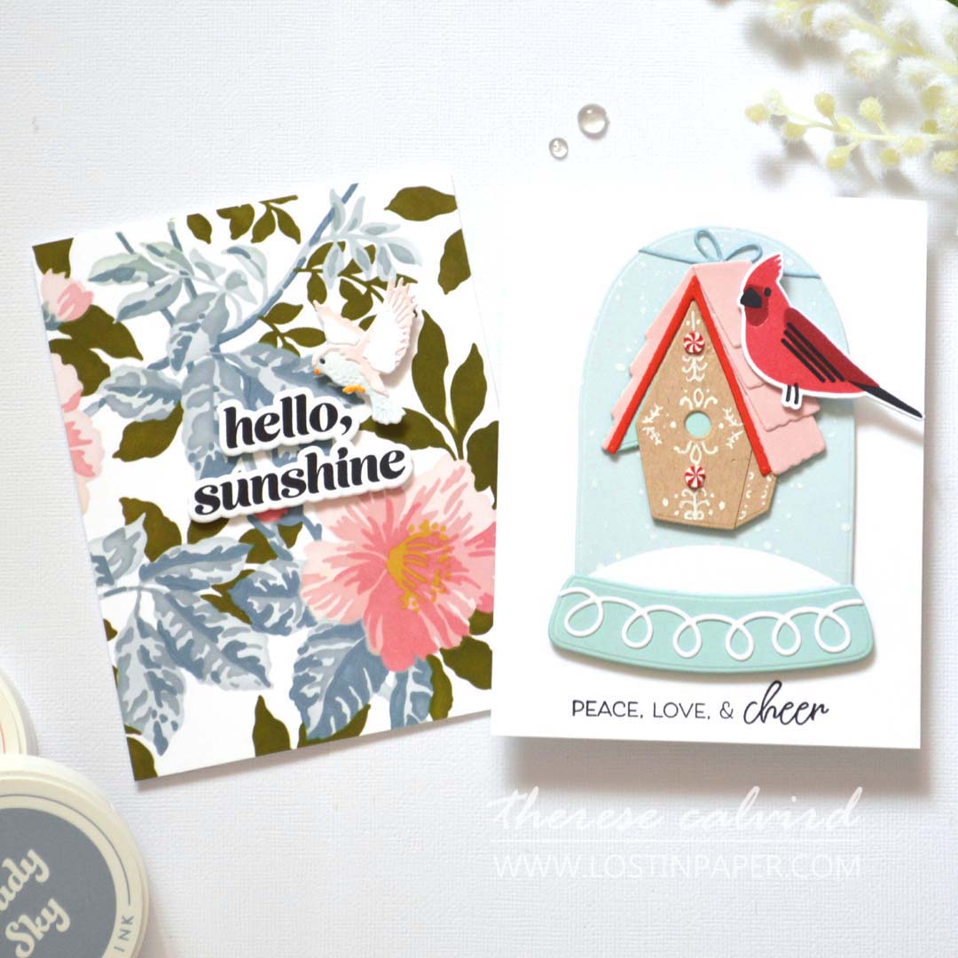 Beautiful card designs! I love how the little white bird looks against the floral background!