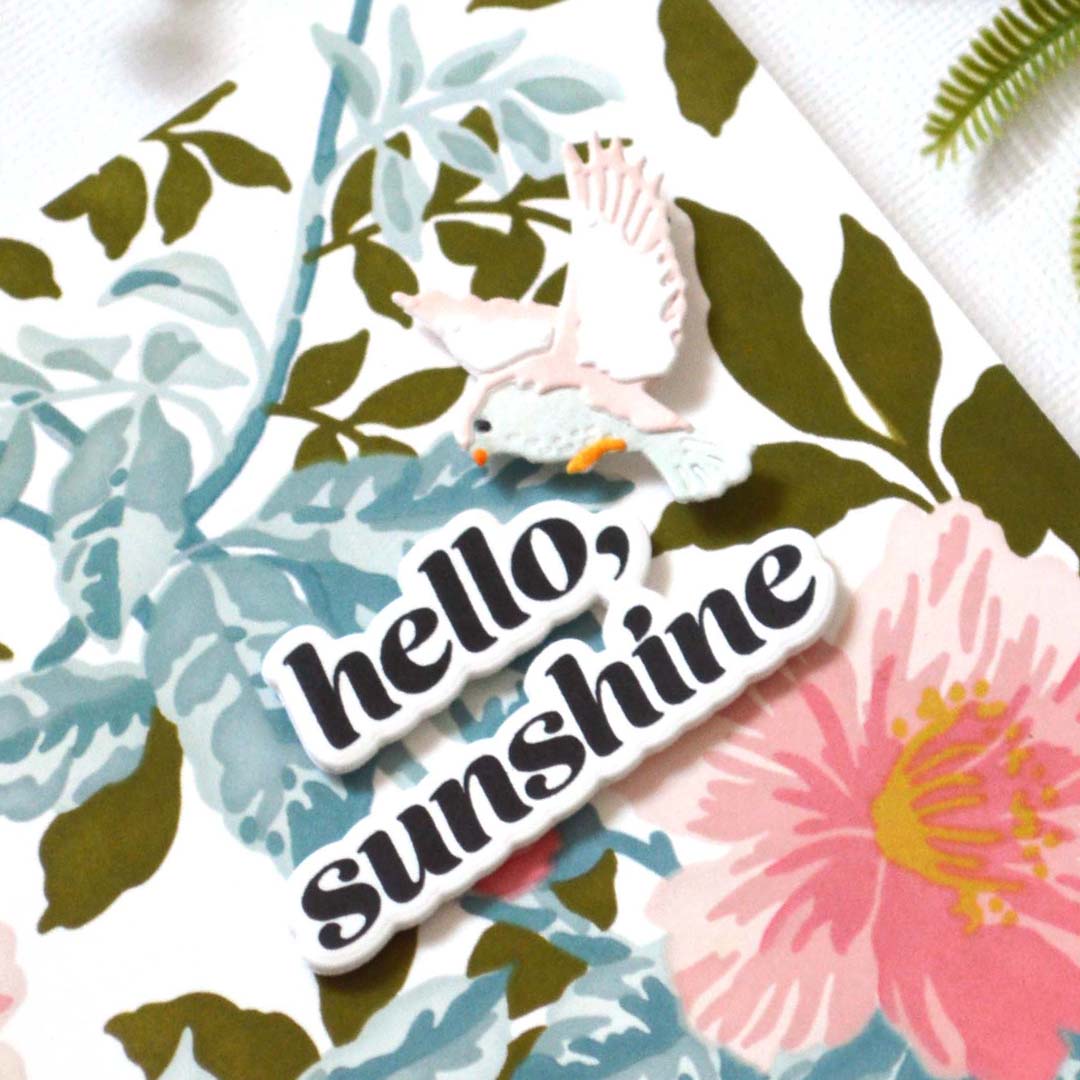 The floral background adds a subtle contrast to the bird, and I finished it off with a central popped-up sentiment for balance. It’s a clean design with just enough detail to feel special without being fussy.