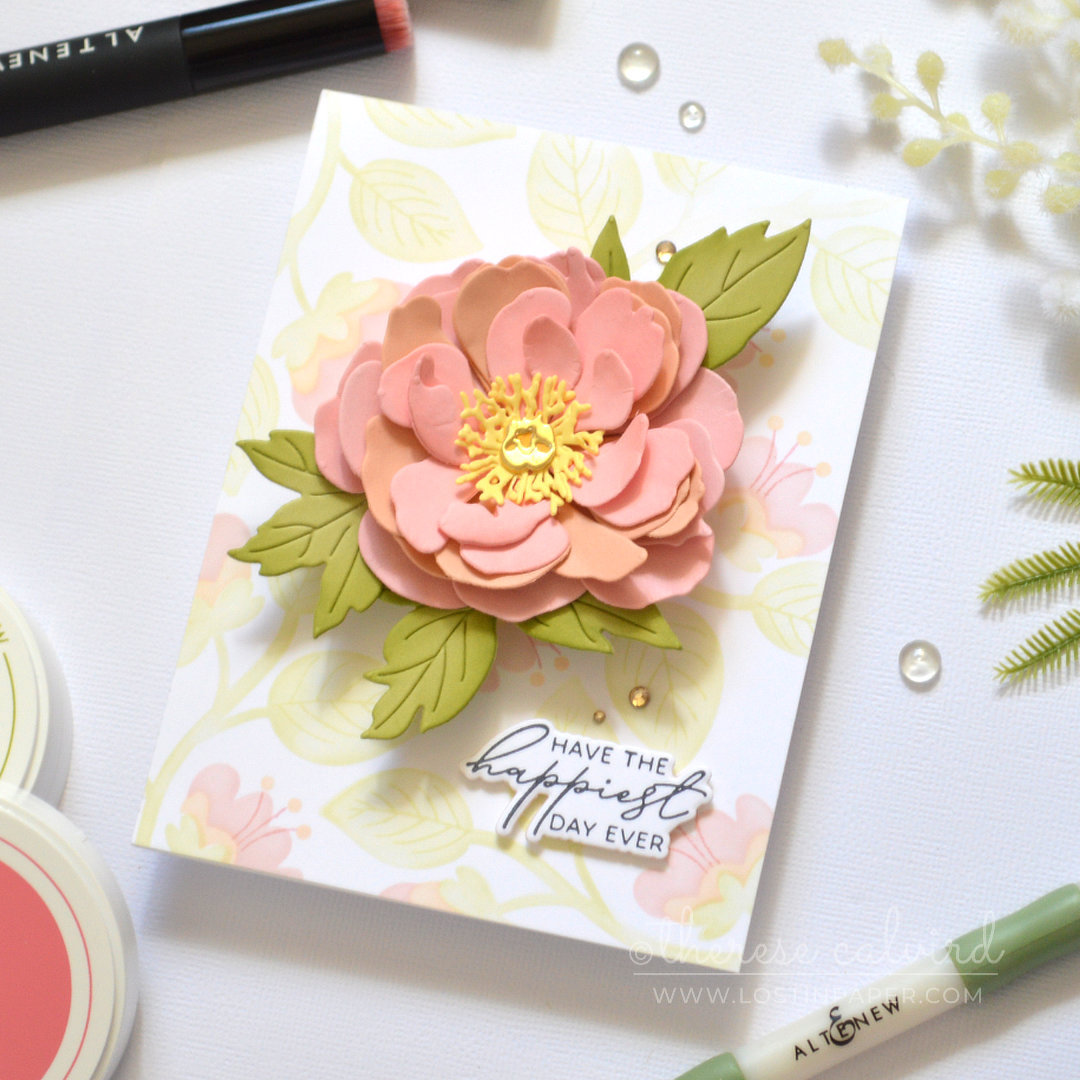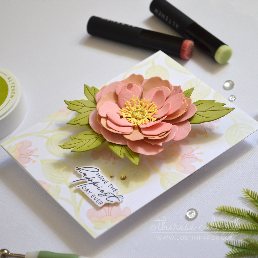 Inks: Altenew – Strawberry | Dusty Pink | Orange Sorbet | Mossy Meadow | Pistachio.