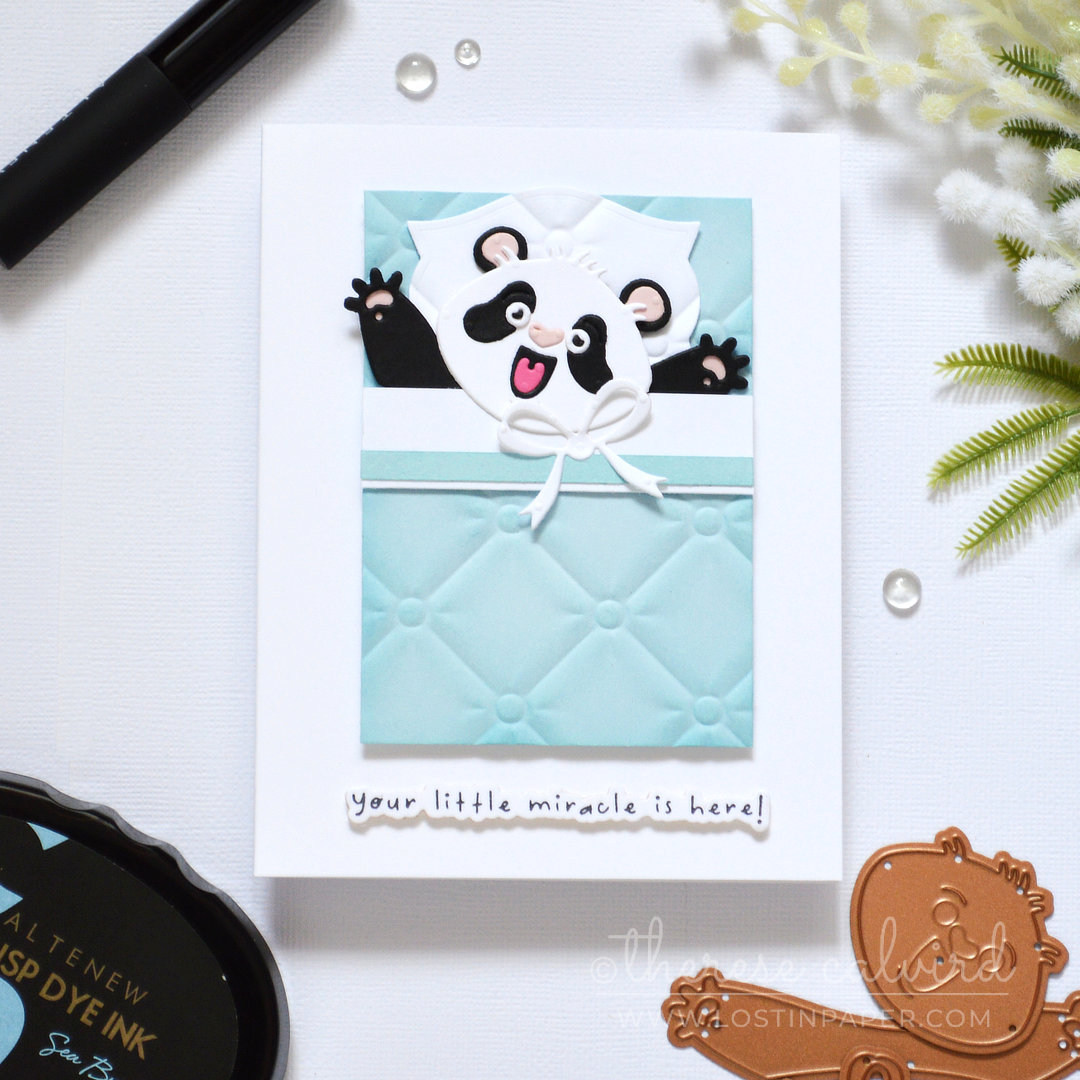 While I had my supplies out, I decided to tweak the perspective and balance of the original design. Using the extra pieces I already had on my desk, a second card came together – but this time I thought it would be fun to turn it into a panda… because why not?