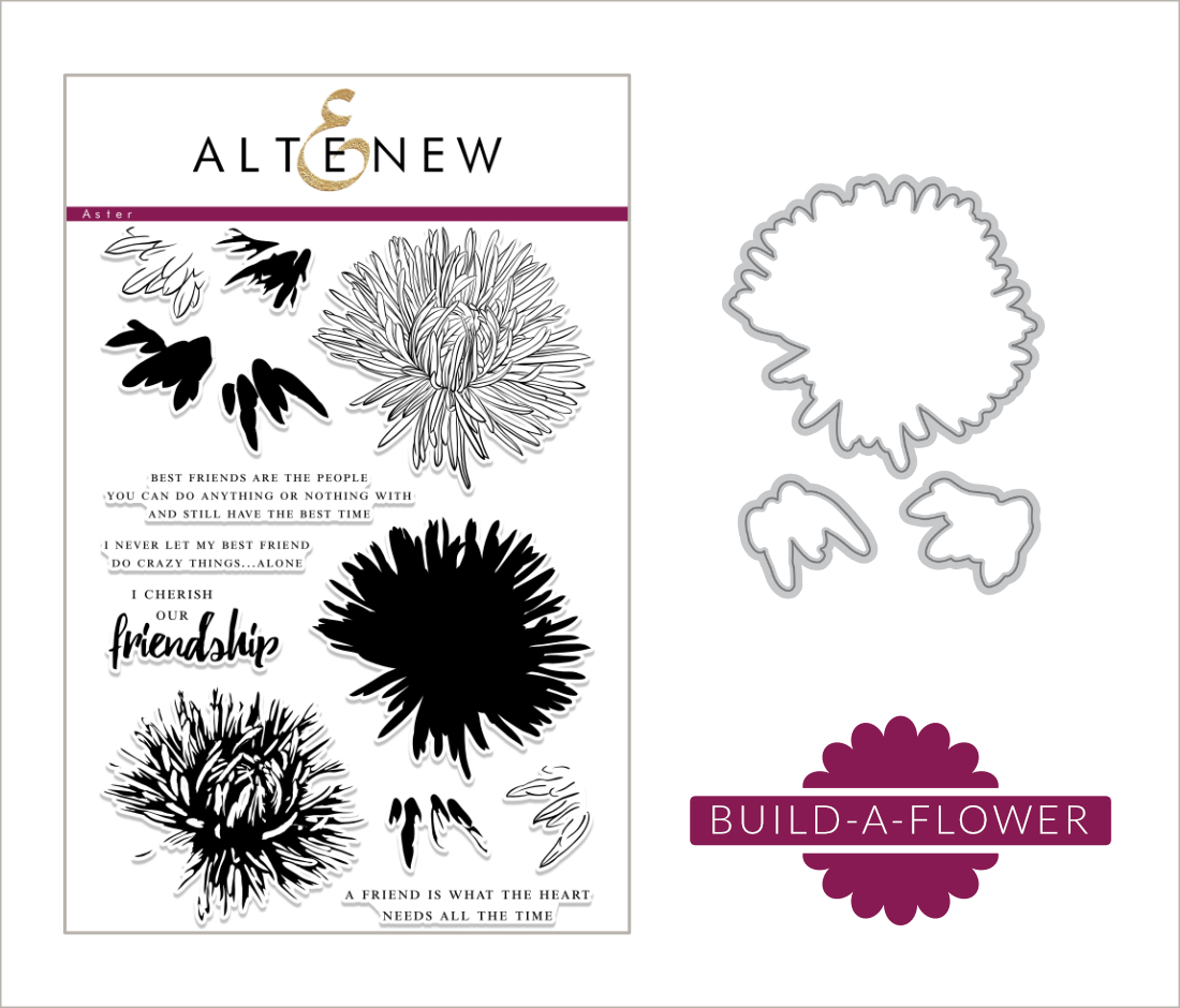 Isn’t this exciting Altenew have a special release of new Build-A-Flower Set on the 15th of every month, each set offers a 6×8 stamp set and a coordinating die so you can easily create your projects (it is only available as a set, not as individual products). This month we are introducing Aster Build-A-Flower, and isn’t it another beauty!